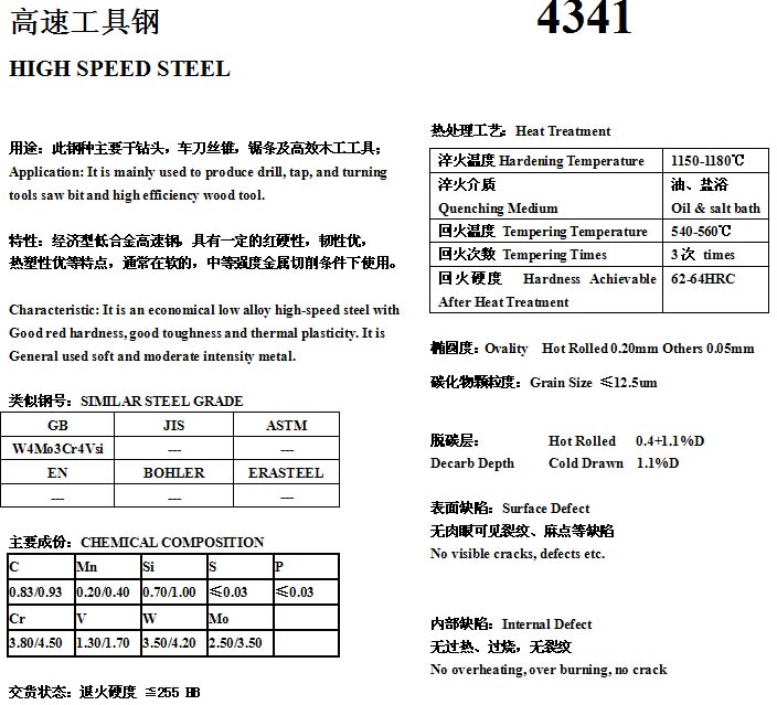 高速工具鋼4341